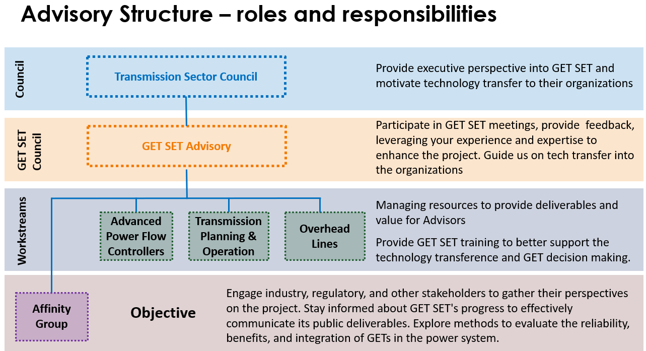EPRI’s Transmission Sector Council provides strategic executive insight into the GET SET initiative, with invaluable contributions from our advisors representing the initiative’s sponsoring organizations. Their active engagement ensures that the initiative remains aligned with industry priorities and practical implementation needs.