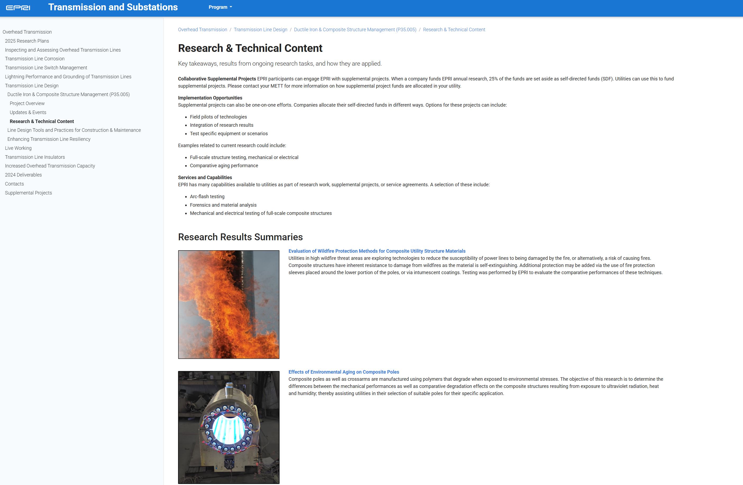 Develop Guidance on Accounting for Fiber-Reinforced Polymer (FRP) Degradation: Over the last several years, EPRI has been producing an application guide for composite structures built upon research performed in this project. The guide covers topics such as composite pole and crossarm manufacturing, degradation modes, installation, maintenance, and more. In 2026, EPRI intends to update the Composite Structures Application Guide focusing on the degradation of FRP composite materials. An emphasis will be placed on how engineers can account for material degradation to ensure reliable performance.