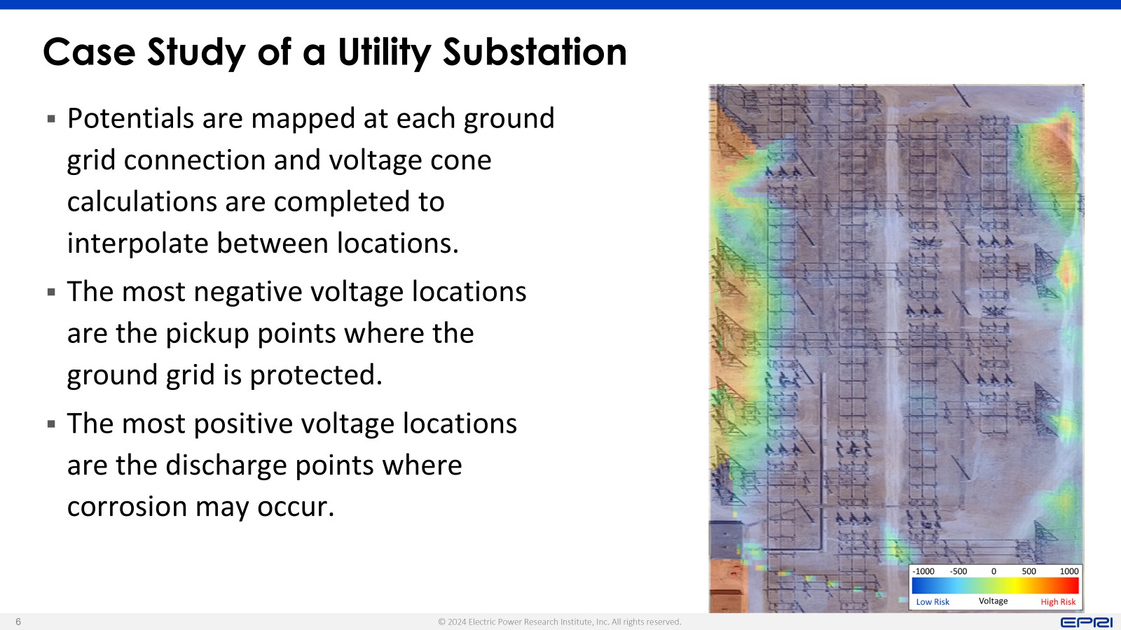 Mapping Equipotential Gradients within a Substation. Monitoring and trending ground grid degradation is labor-intensive and has safety concerns. Robotic systems are expected to take over these tasks, allowing personnel to focus on more critical work. The project will evaluate changes in equipotential lines using robots to map ground potential rises and locate degraded elements. Corrosion Management Guidebook. This guidebook provides information for inspection, assessment, mitigation, and remediation for all departments within a utility. It includes fundamentals of corrosion, inspection and assessment guidance, and mitigation methods that align with the environment.